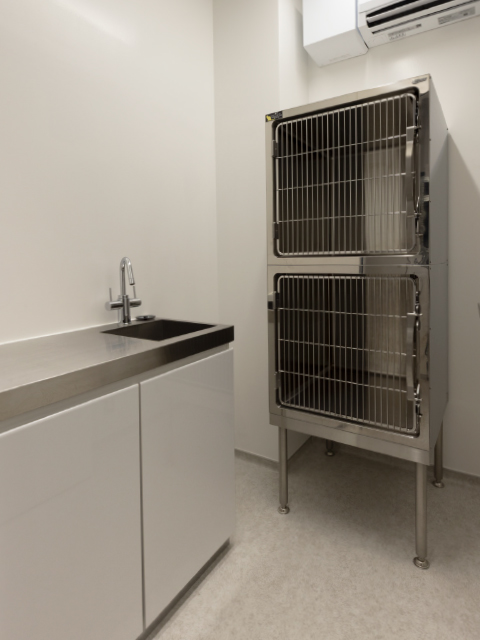 光と風がやさしく通る診察室です。大型犬対応の診察室(1診)はエコーを置いてもなお十分な広さです。